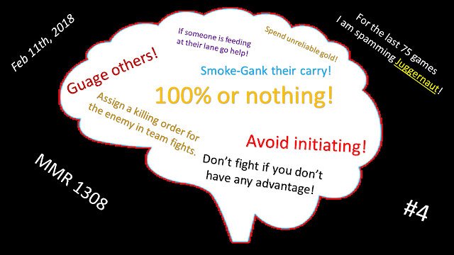 I open this image every time before I start the game. I switch back and forth to it while queueing, playing, waiting to respawn and after the game. For two weeks I haven't shared my MMR progression with you. It was because I posted an entry about the 7.08 patch on Saturday and there was actually no progression to share with you. The week before I started using this brain image my win rate was 41%. At the start of the last week, I began to use this image to keep myself focused and I raised my win rate to 71%. I'm still spamming Juggernaut. I have 22 more games to play with him. After that, I will create myself a hero pool of 3 or 5 core heroes. I'll keep playing the carry role.